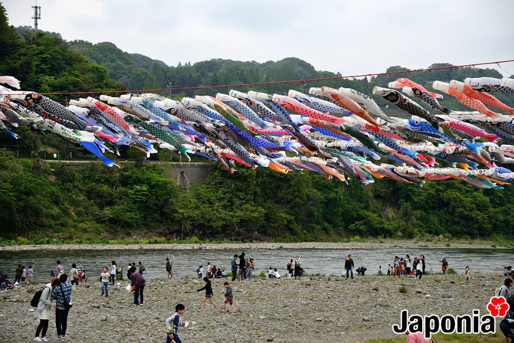 Aparte de celebrarse en casa, también en la calle, se izan KOINOBORI de muchos tamaños en autopistas, en parques y hay de muchos tamaños, la más grande conocida es de 100metros de largo,se puede ver en las fuentes termales de Tsuetate-onsen donde se izan hasta 3500 koinobori.