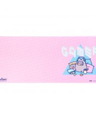 Alfombrilla de ratón tamaño XL de Pusheen the cat, con el texto “Gamer” en tonos rosas y azules.