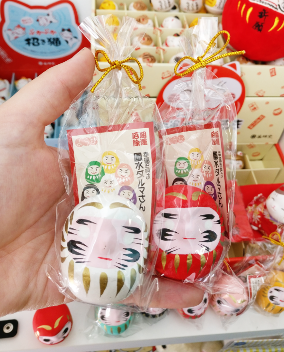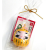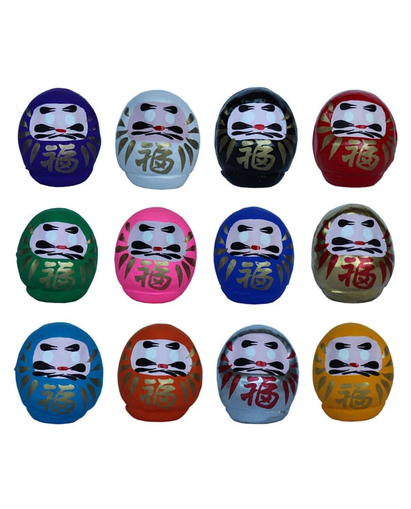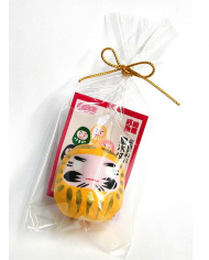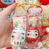 Este daruma pequeño es perfecto para regalar, viene en una bolsa de tela de organza en dorado o blanco.