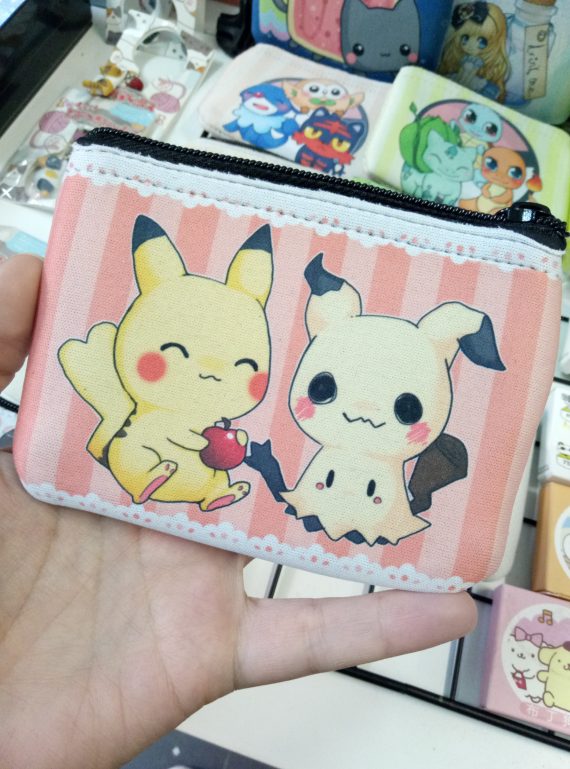 Monedero de poliester con diseño propio de Pikachu y mimikyu