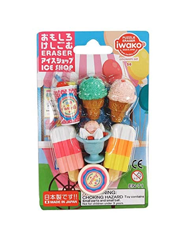Set de gomas japonesas con forma de Helado original de la marca IWAKO. Iwako es una marca especializada en gomas de borrar con forma de figuras.