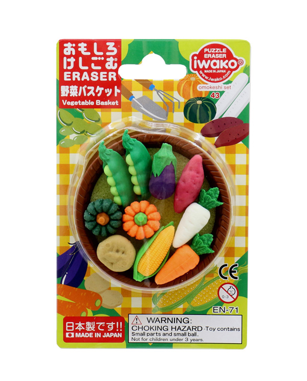 Set de gomas japonesas con forma de Verdura original de la marca IWAKO. Iwako es una marca especializada en gomas de borrar con forma de figuras que además son desmontables.
