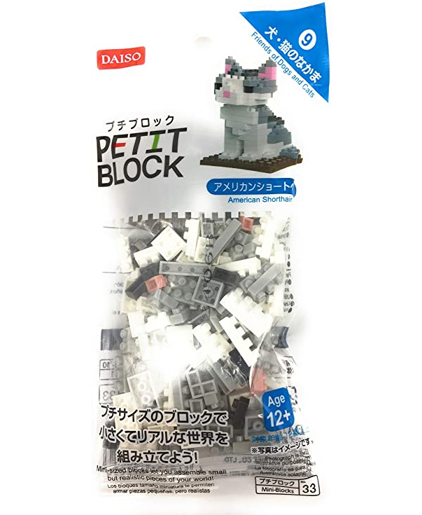 Mini bloques tipo lego (pero mucho más pequeños!) para montar un gato gris.