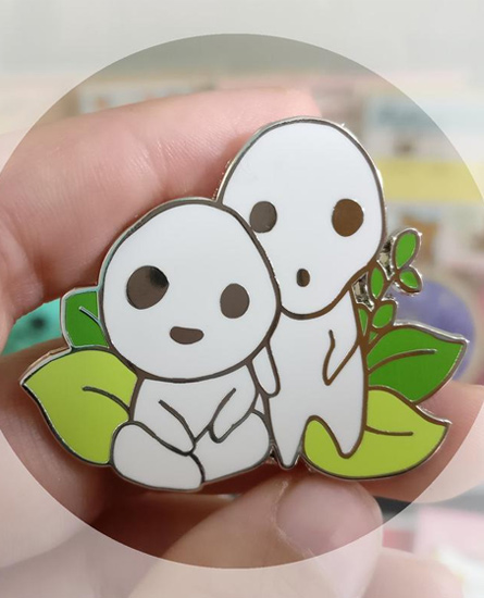 Pin de Kodamas, de la película Princesa Mononoke de Ghibli, con un diseño propio original. Los pins de enamel o lapel pins están super de moda por lo que es un regalo genial para cualquier coleccionista. Perfectos para decorar tu chaqueta, tu tote bag o simplemente coleccionar en un corcho.