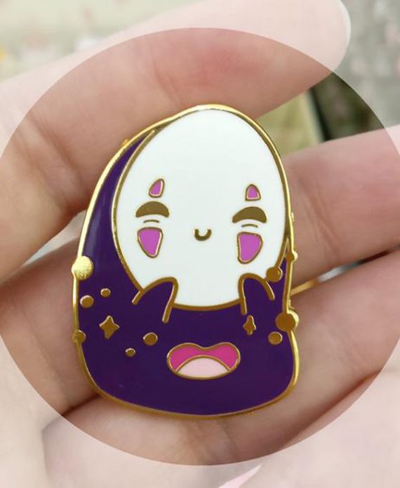 Pin de Sin rostro de la película El viaje de Chihiro, de estudio Ghibli, con un diseño propio original. Los pins de enamel o lapel pins están super de moda por lo que es un regalo genial para cualquier coleccionista. Perfectos para decorar tu chaqueta, tu tote bag o simplemente coleccionar en un corcho.