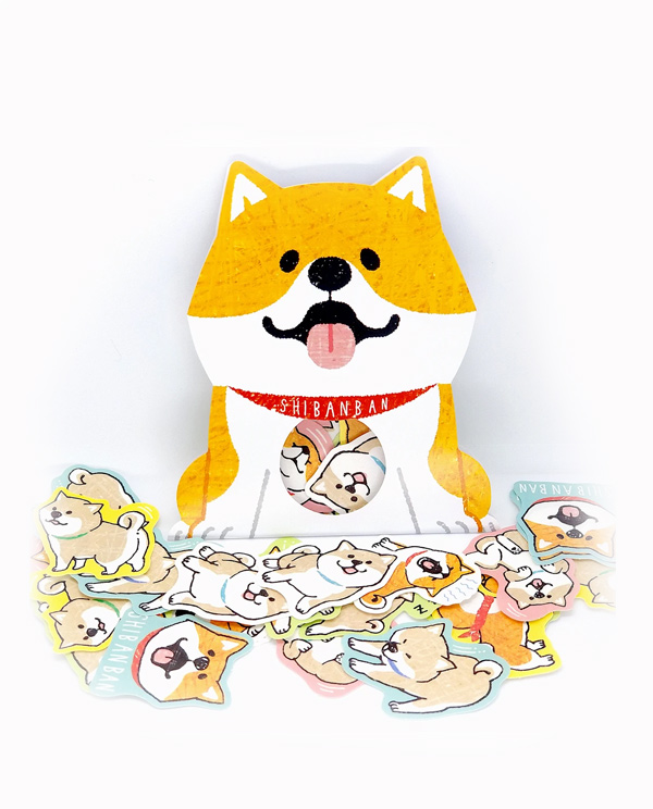 Set de pegatinas estilo perritos de Shibanban Shiba Inu, los perritos kawaii de San-x . El set contiene10 diseños de pegatinas diferentes del perrito Shiba Inu en plástico semi transparente, con un total de 30 unidades.