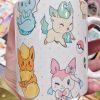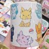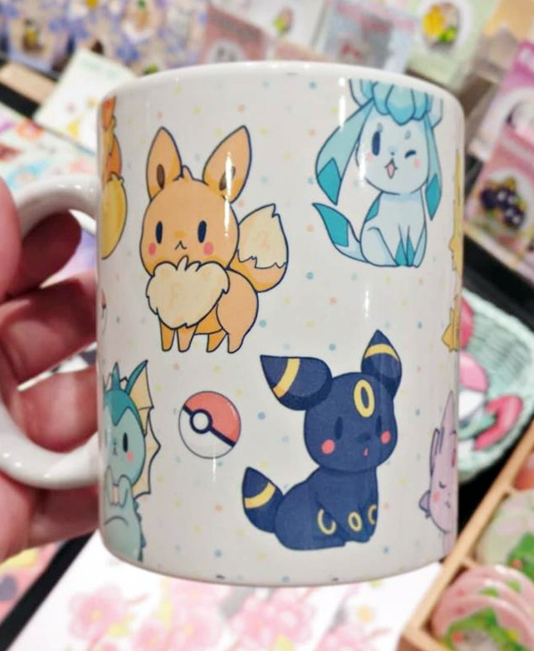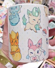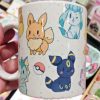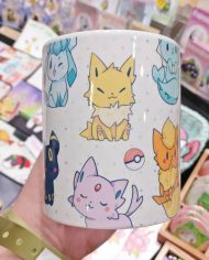 Una taza original para los amantes de las películas de Pokémon con dibujos de Eevee y sus evoluciones.