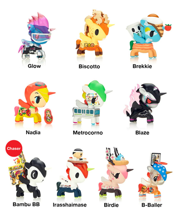 Descubre 10 nuevos unicornios traidos de la mano de Tokidoki en esta nueva entrega de la serie regular de figuras Kawaii.